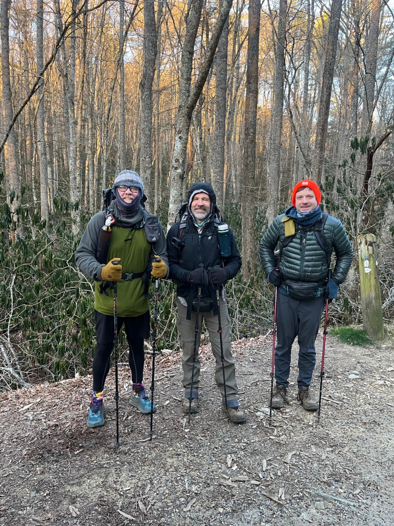 I had misgivings from the start. Twenty miles, this early? Going backward? In the cold and rain? Well, at least we (Lost-and-Found, Wedge, Hide, me) would be slack packing, and we’d be returning to a warm cabin (single wide with wood paneling).