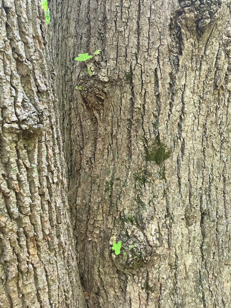 Not technically a pocket garden, but the same kind of thing. These are tiny little sprouts on the side of a huge tulip poplar.