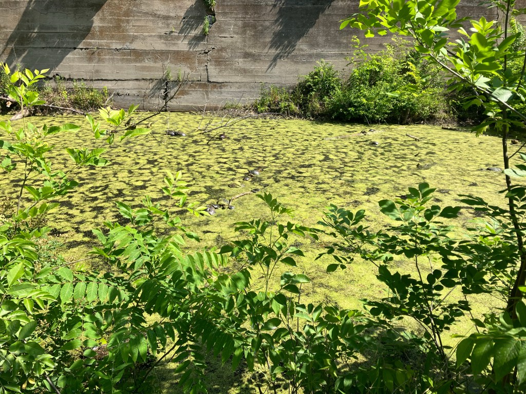 Before the trail left the towpath, it passed small brackish ponds, now stagnant in places where the canal once was. The water is covered in bright green slime, totally opaque. A shocking number of turtles clamber over one another to sun themselves on logs.